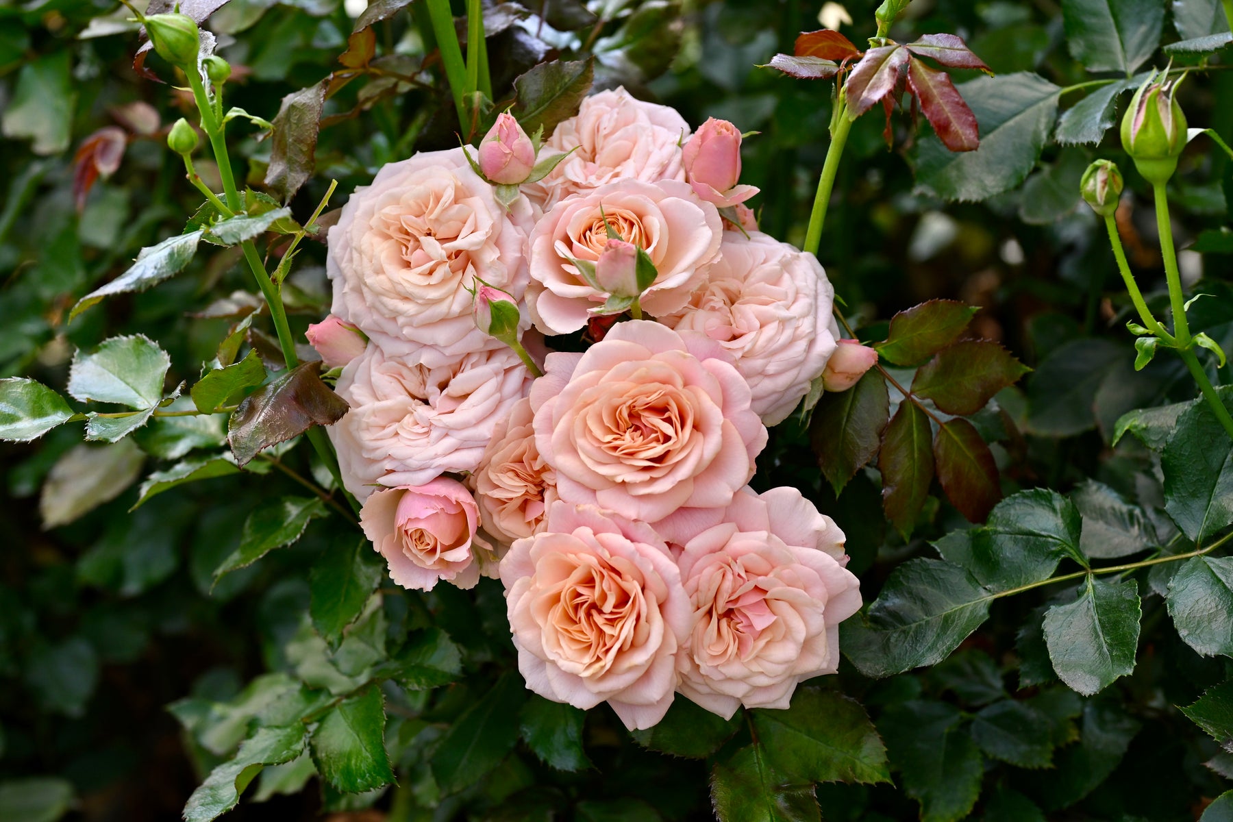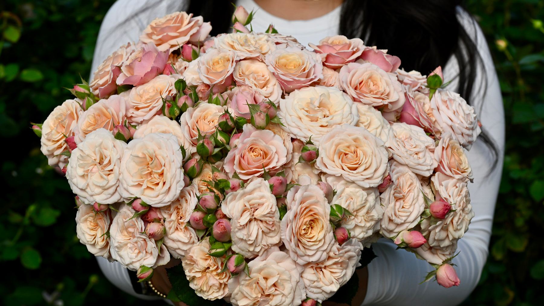 Plush Parasol captivates with its creamy blush blooms that open to reveal warm peach centers and soft, romantic petals. Its elegant clusters and timeless charm make it a perfect choice for refined bouquets and serene garden displays.